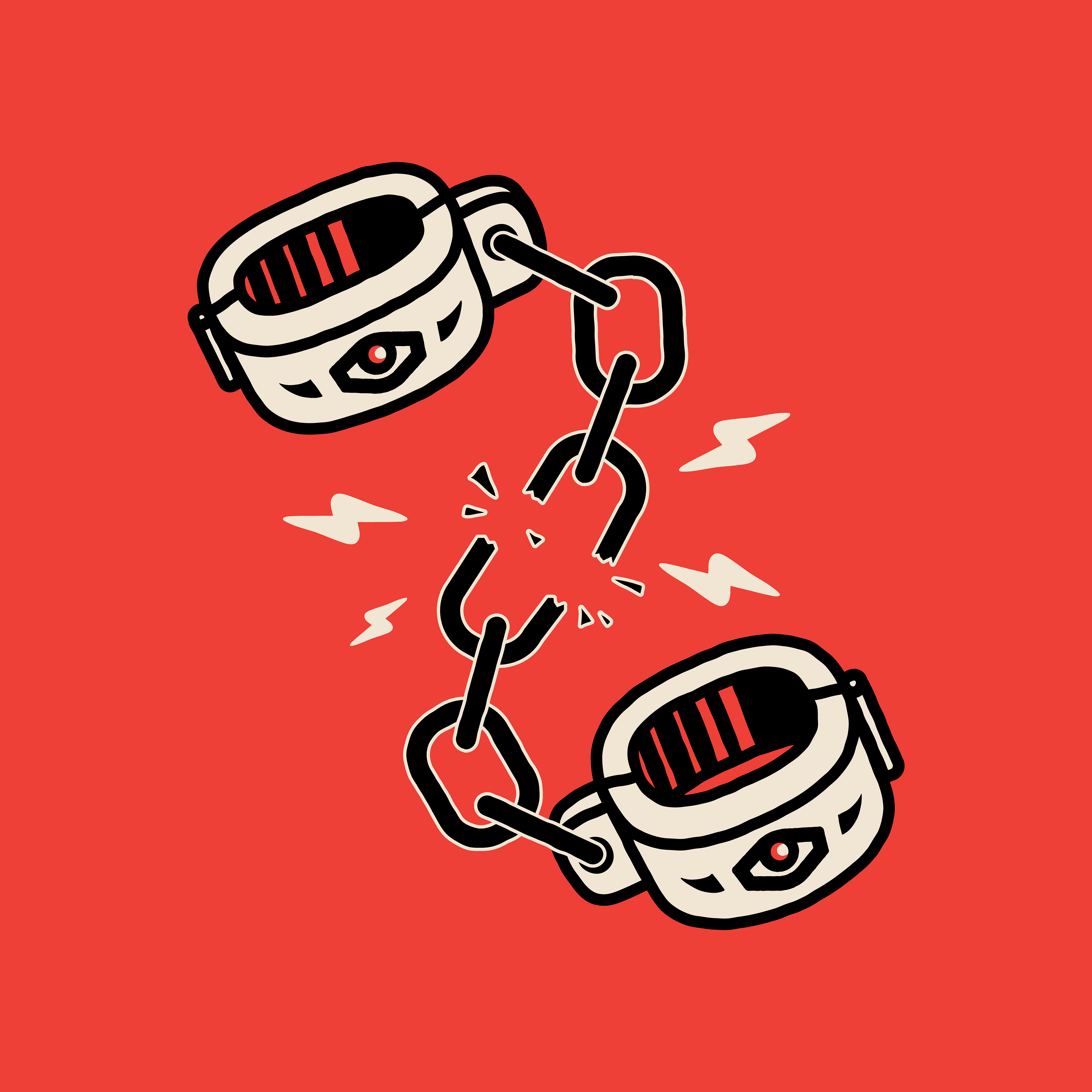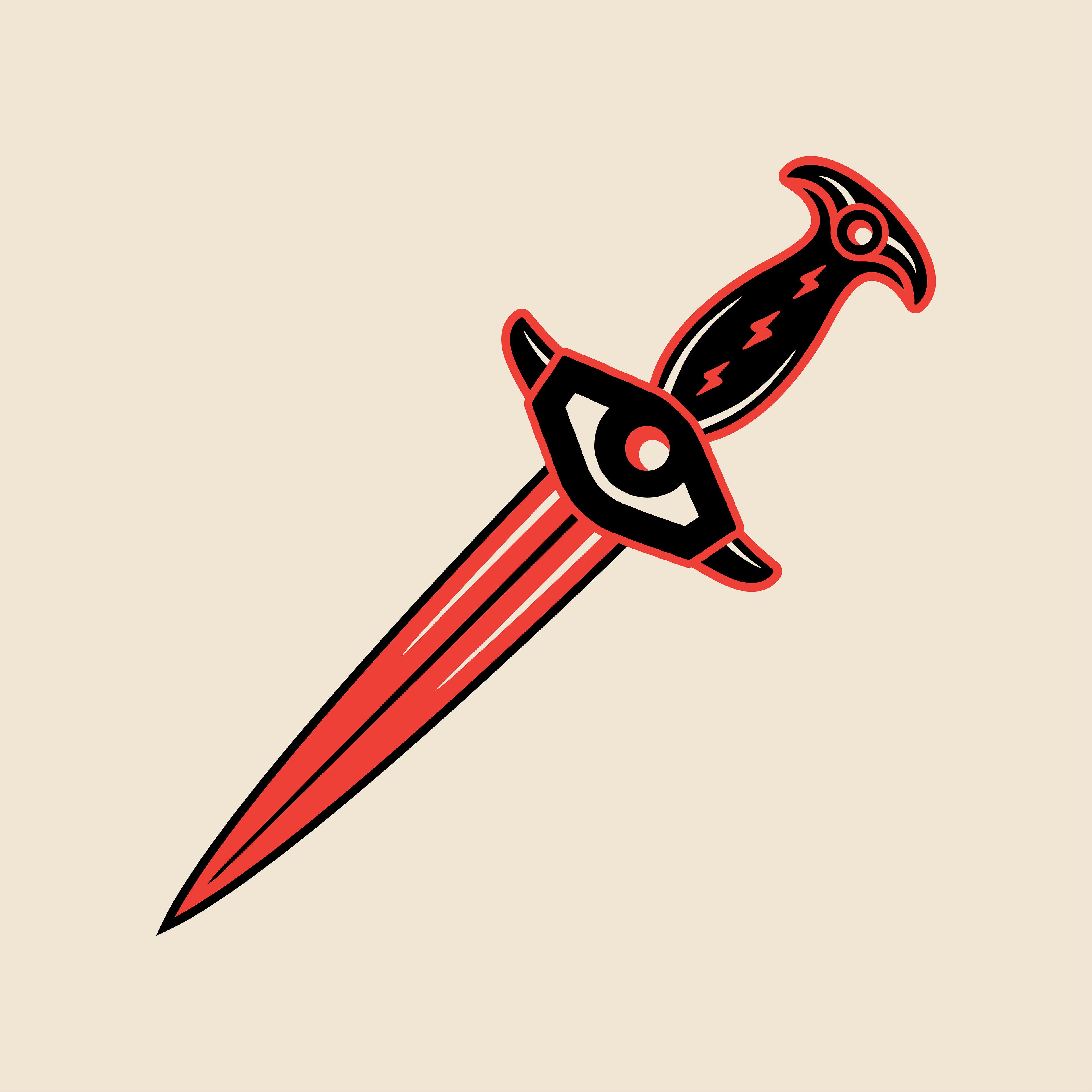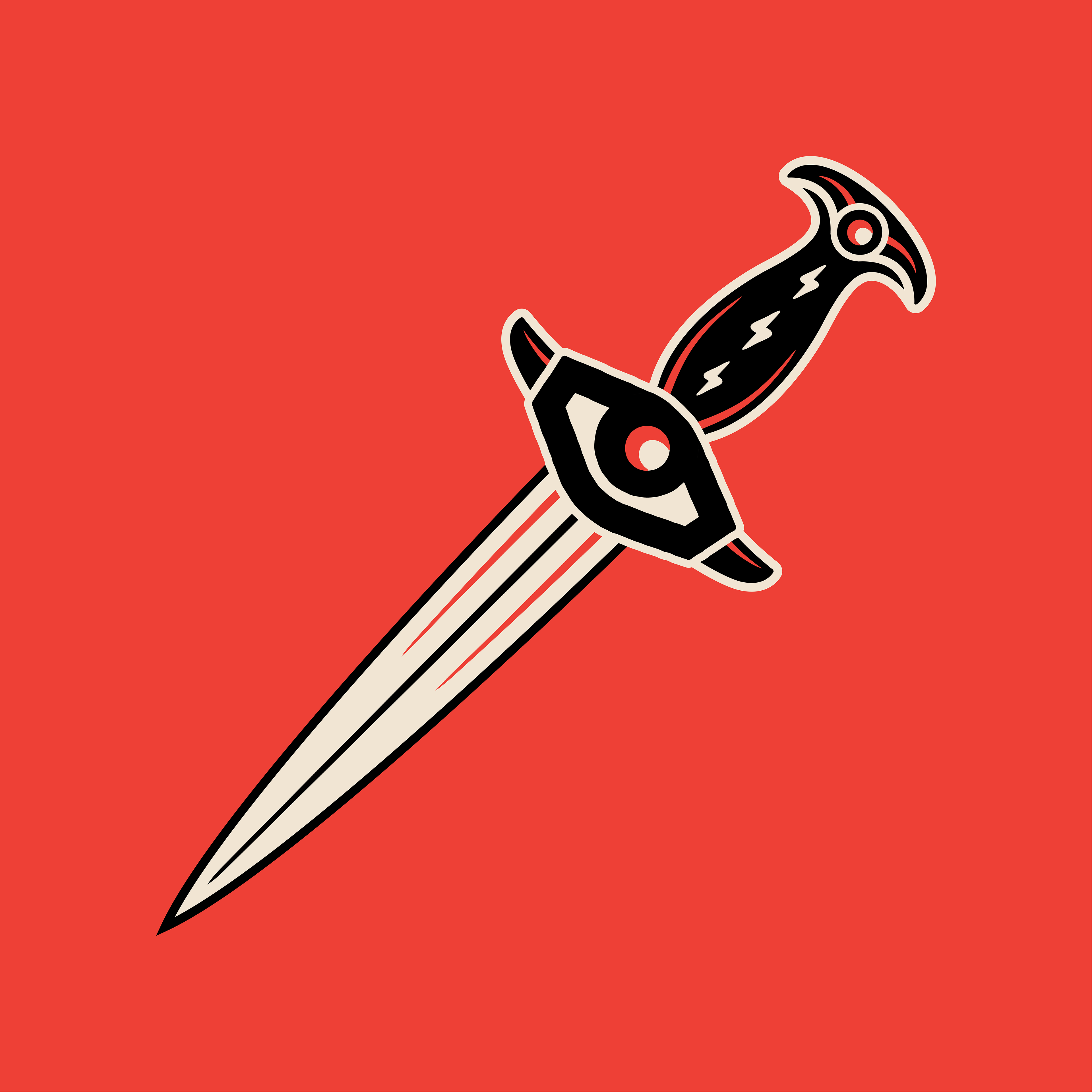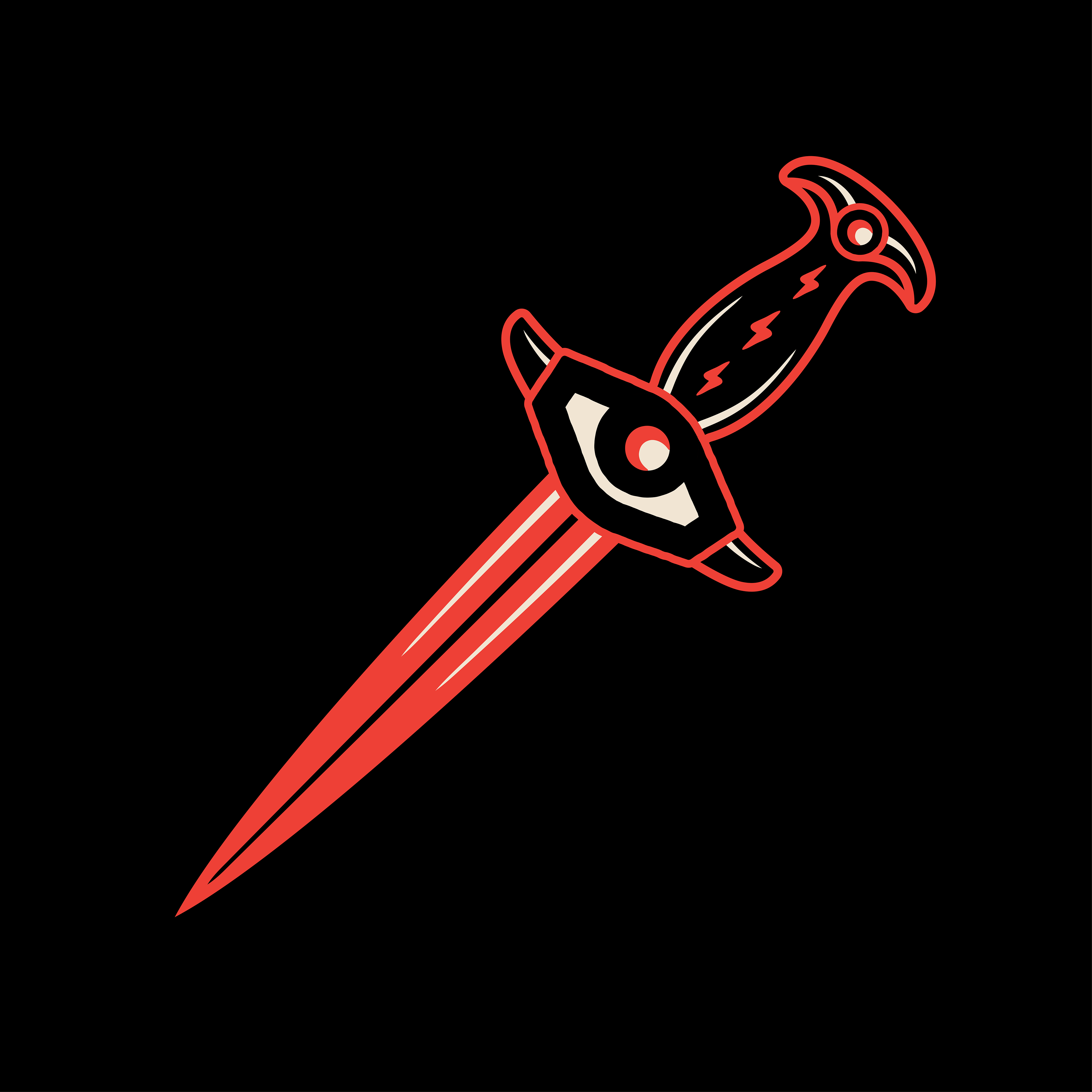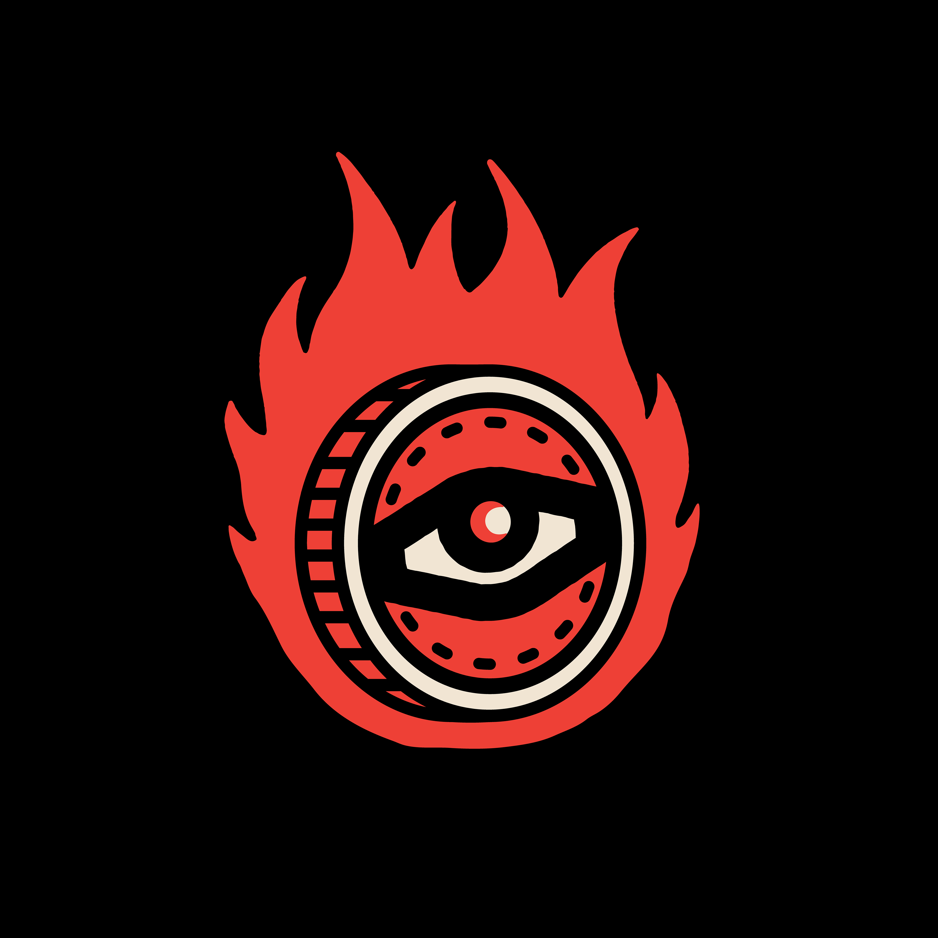 is that it doesn't really have one particular logo. Instead, it uses a series of common logo elements, such as cult iconography, bold colour, and heavy line weight, which can be shuffled around and reshaped into many different logos and images.